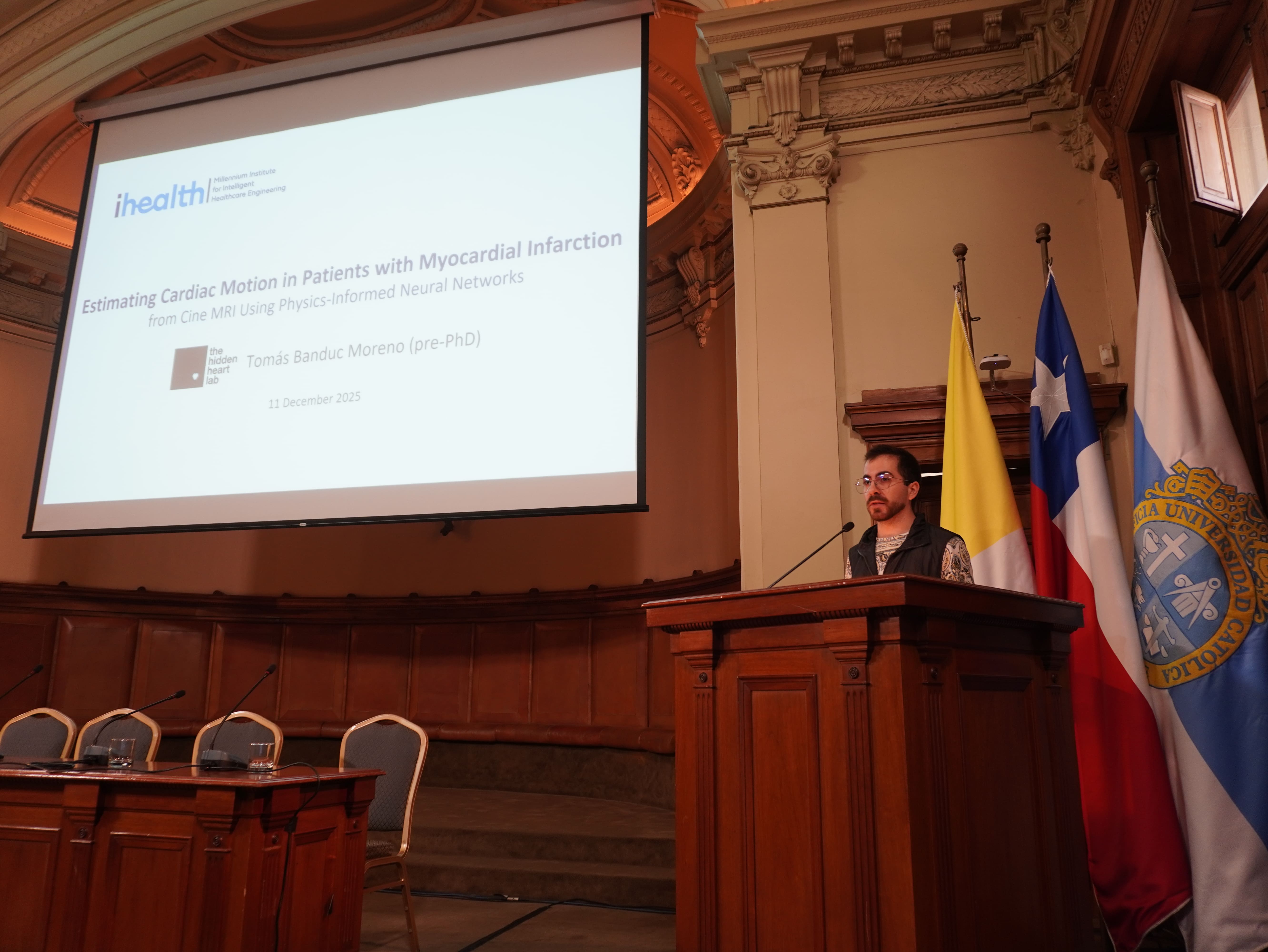 - “Creating cardiovascular digital twins from MRI across physics”, presentada por el investigador principal Francisco Sahli (Depto. de Mecánica y Metalurgia e IIBM, UC).