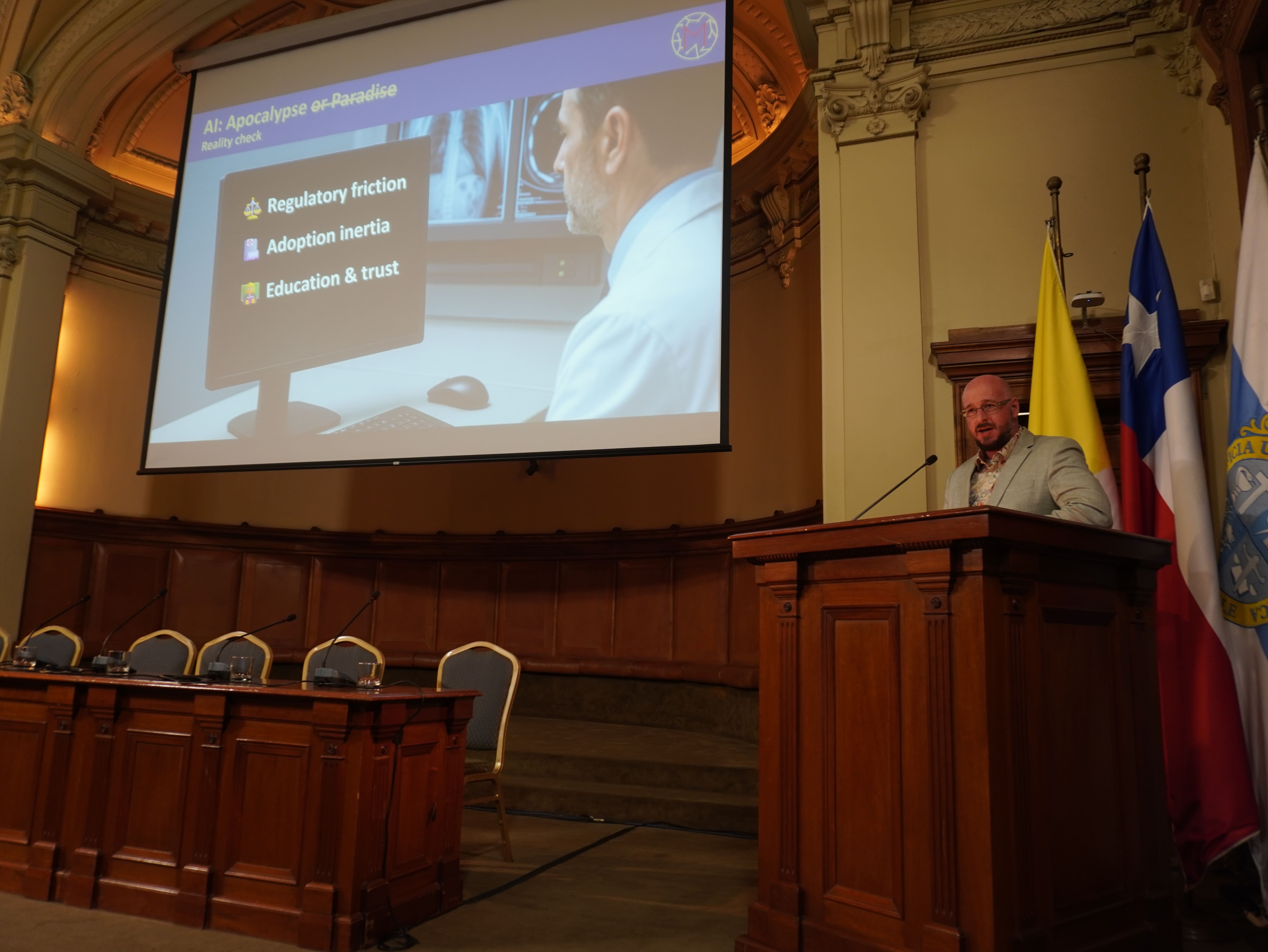 El evento, realizado en la Pontificia Universidad Católica, presentó avances nacionales en inteligencia artificial aplicada a radiología, resonancia cardíaca, modelos de lenguaje y diagnóstico asistido, premiando los mejores trabajos de estudiantes y jóvenes investigadores.