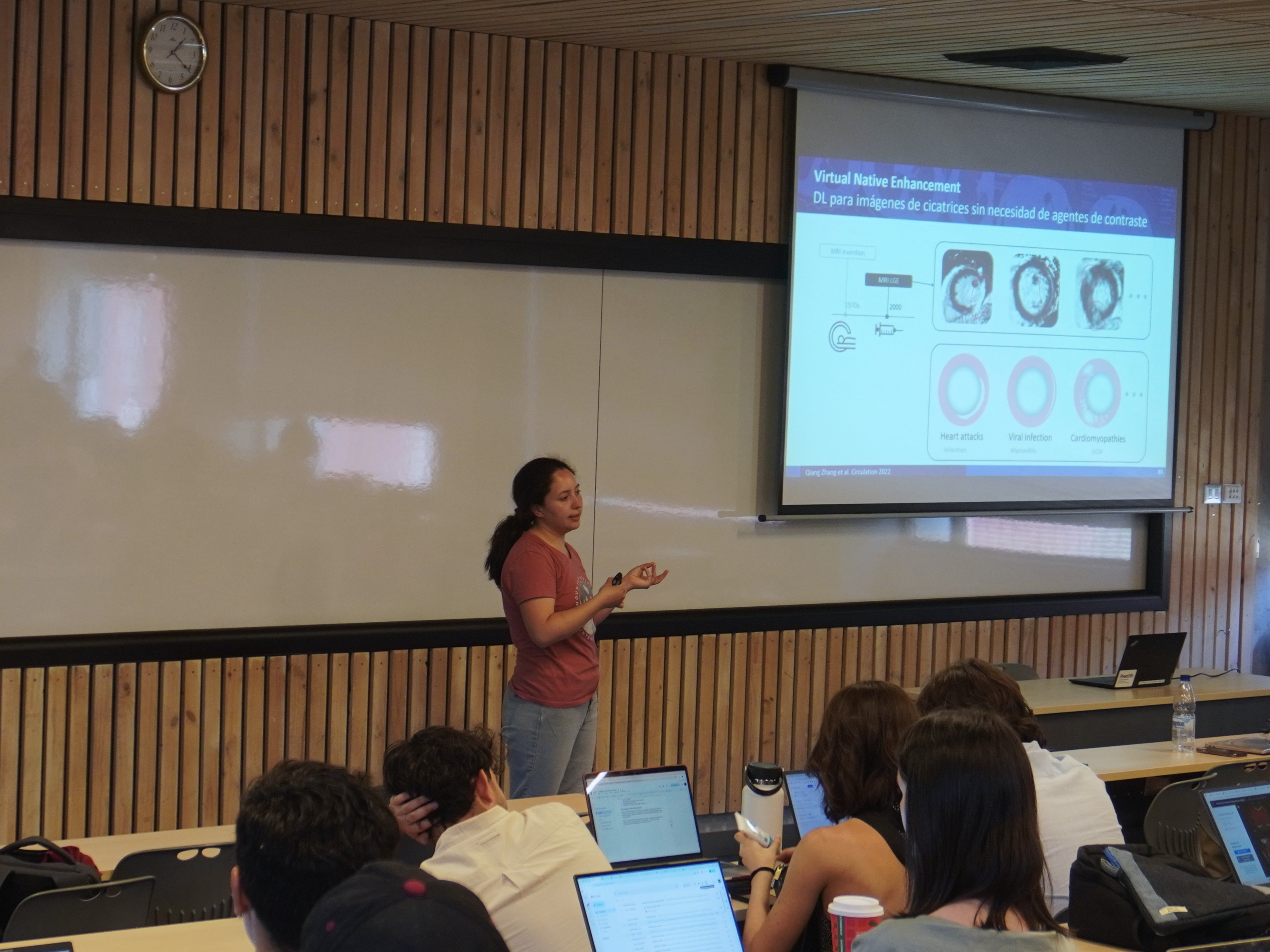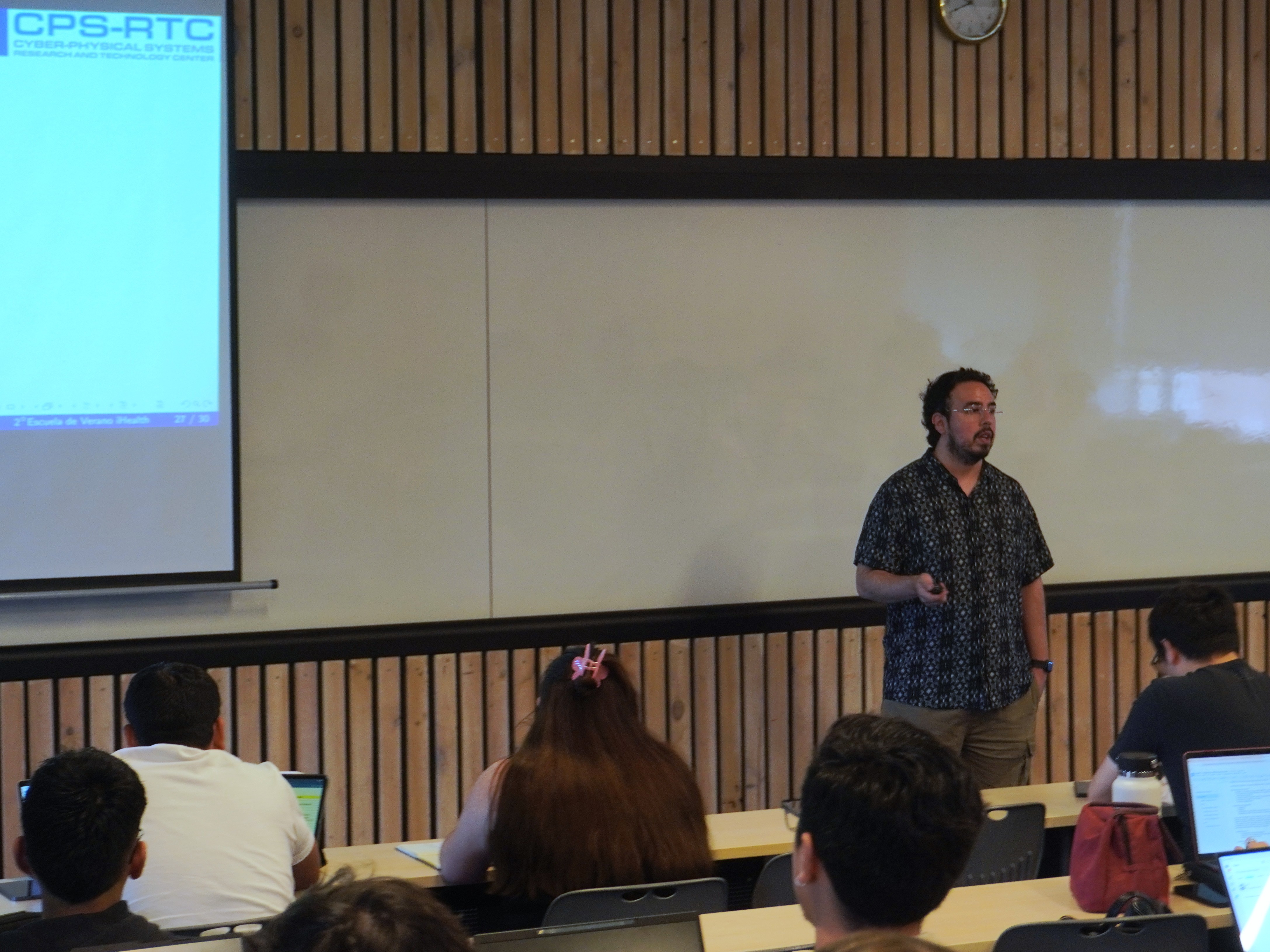 Las clases estuvieron a cargo de los integrantes de iHEALTH: el Dr. Marcelo Andia, profesor de Medicina UC y director del instituto; el Dr. Denis Parra, profesor del Depto de Ciencia de la Computación UC e investigador principal del instituto; las investigadoras postdoctorales de iHEALTH Dra. Evelyn Cueva y Dra. Yoleidy Huérfano; la estudiante de doctorado UC, Tabita Catalán: y el investigador joven del Centro de Investigación Tecnológica en Sistemas Ciberfísicos (CPS-RTC), Dr. Carlos Valle.