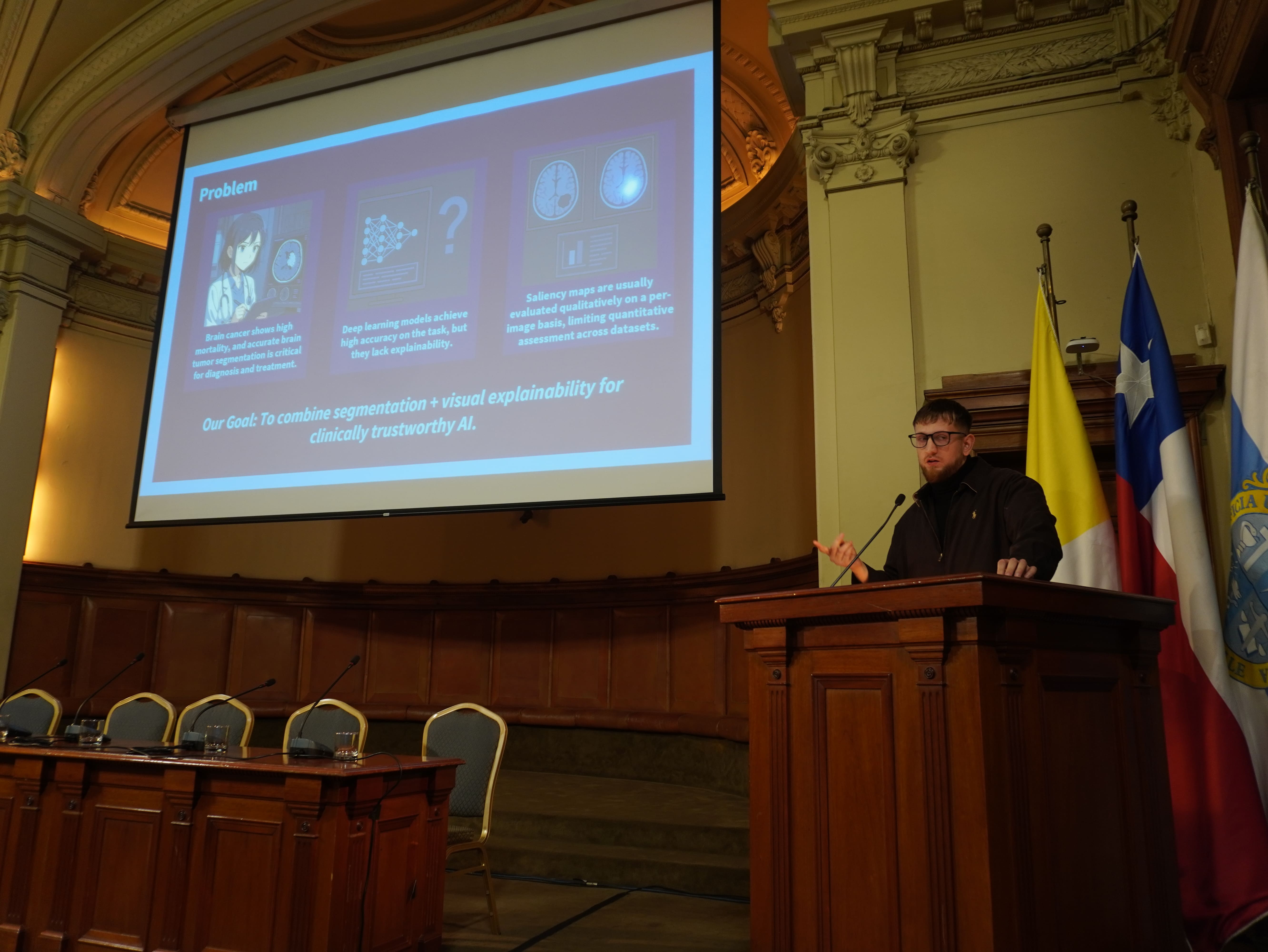 El evento, realizado en la Pontificia Universidad Católica, presentó avances nacionales en inteligencia artificial aplicada a radiología, resonancia cardíaca, modelos de lenguaje y diagnóstico asistido, premiando los mejores trabajos de estudiantes y jóvenes investigadores.